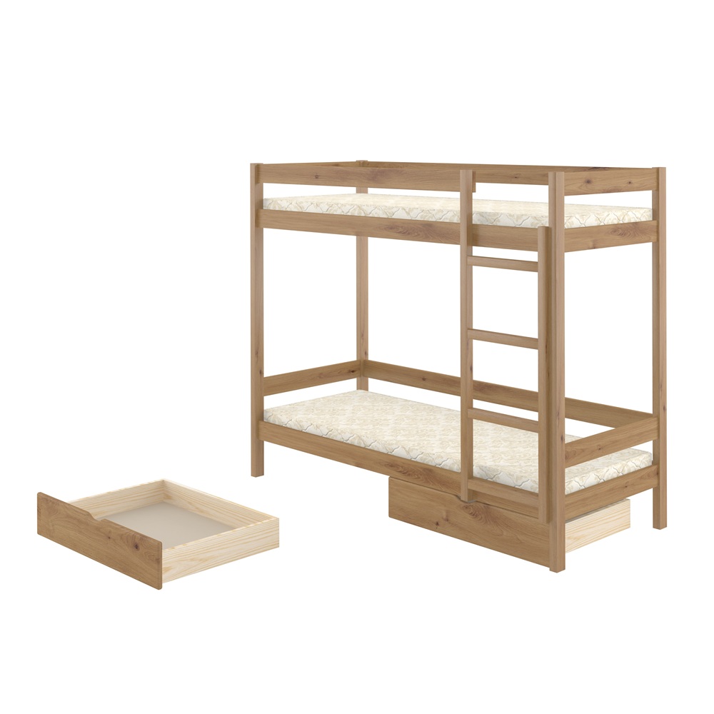 Каркас виготовлений з міцних матеріалів, що забезпечує надійність і стійкість обох ярусів. Ламельні основи під матраци гарантують комфортний сон та правильну підтримку, а конструкція продумана для безпечного користування дітьми різного віку.