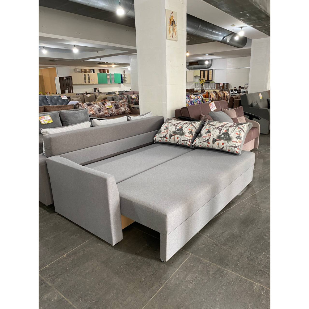 Прямий диван "Асоль" Габаритний розмір: 2100х930 мм Спальне місце: 1850х1400 мм Висота спинки: 750 мм Висота підлокітника: 620 мм Висота сидіння: 430 мм Механізм трансформації: єврокнижка Матеріал каркасу: ДСП, ДСП, ДСП, ДСП, ДСП блок (Bonnel), пінополіуретан, синтепон, холлофайбер Ніша для білизни: є Тканина (основна): Flox 83 (EximTextil) Тканина (координат): Flox 83 (EximTextil)