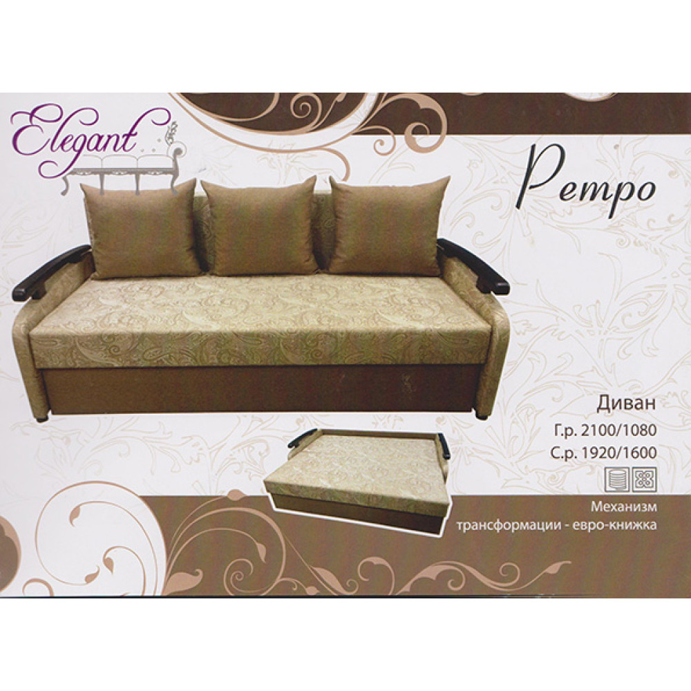 Диван Ретро- елегантний диван стане прикрасою Вашої квартири. У комплект дивана входять три великі подушки. Передбачено механізм трансформації – єврокнижка. Є ніша під білизну.